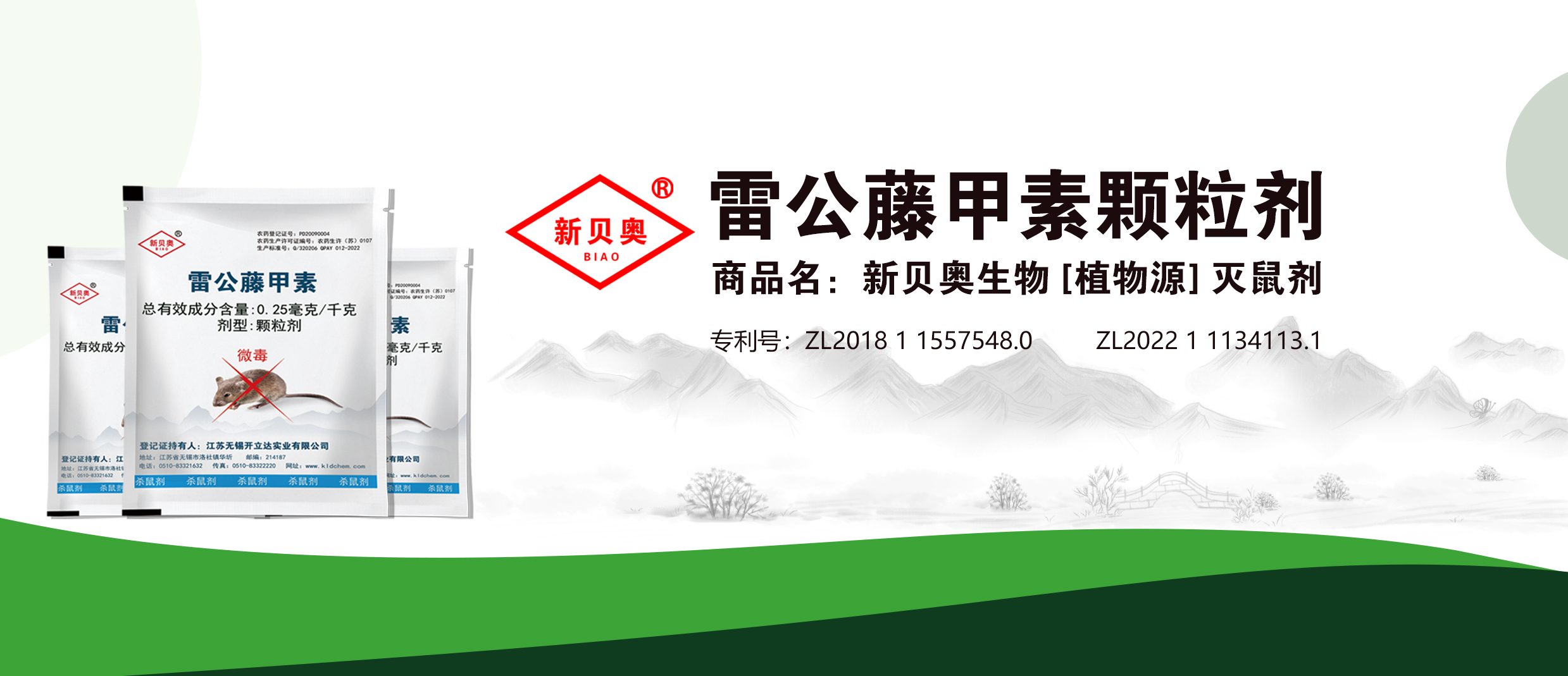 何謂“新貝奧生物(植物源)滅鼠劑”雷公藤甲素滅鼠劑?新貝奧生物(植物源)滅鼠劑是產品的商品名。其農藥名:雷公藤+制取物(雷公藤甲素滅鼠劑),因為該產品雷公藤中含